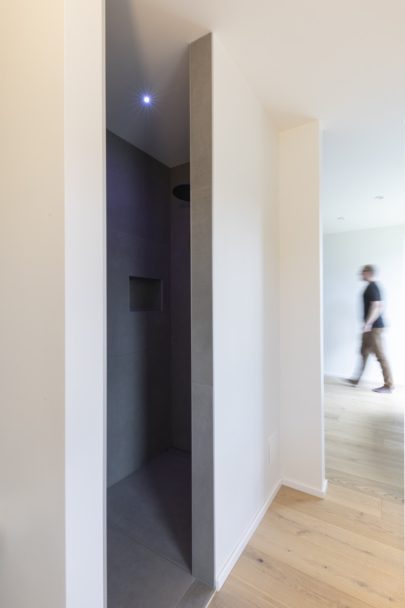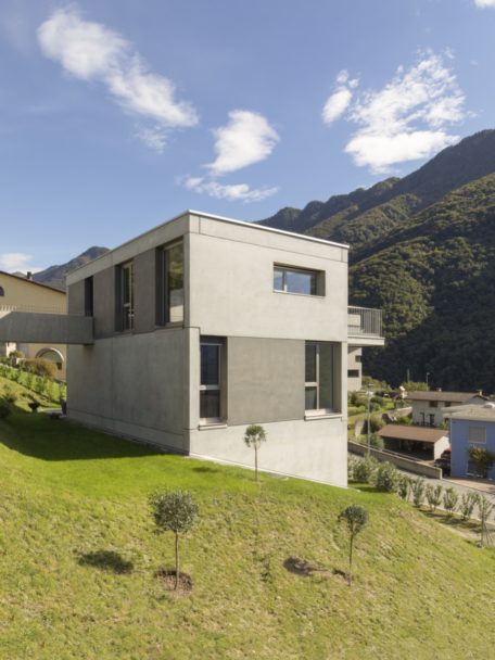 Leggermente ruotato rispetto alla pendenza del terreno, l’edificio ottiene la miglior vista verso il Lago Maggiore e il massimo rispetto per la propria privacy.