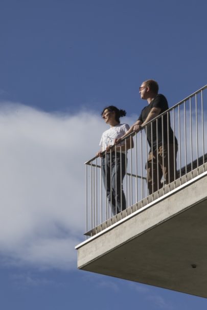 Molti sono gli elementi della costruzione che sono stati lasciati visibili all’interno proprio per testimoniare il processo della prefabbricazione: ad esempio sono stati mantenuti gli agganci dei pannelli alla gru di montaggio e conservate le scritte dei montatori sugli stessi pannelli di cemento.