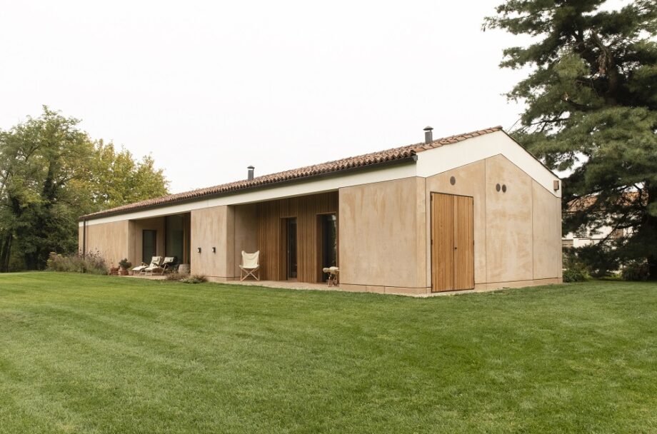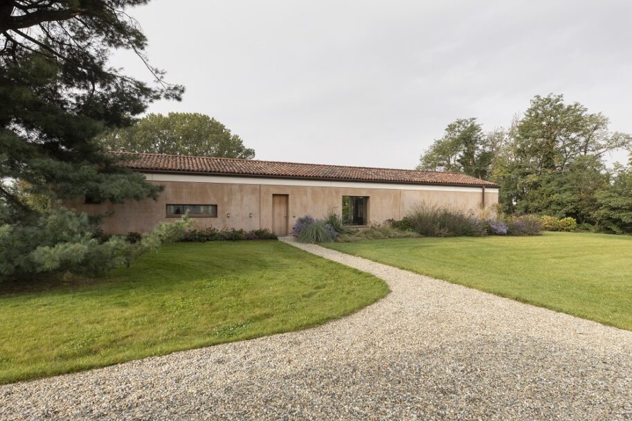 In un borgo antico di Pavia, caratterizzato da storiche cascine agricole, è stata costruita Villa Franchino, progetto firmato dall’architetto Valentina Moretti e dallo studio di architettura Ferranti/Schnell, all’interno del muro perimetrale di un’antica cascina che è stata oggetto di demolizione durante l’intervento.