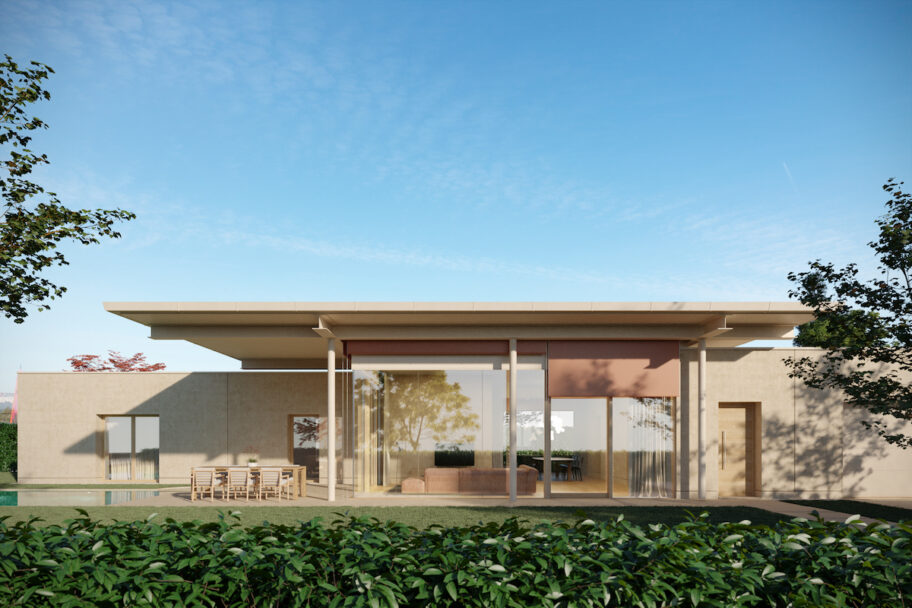 Colori naturali e linee rigorose per una nuova villa More immersa nella campagna bergamasca